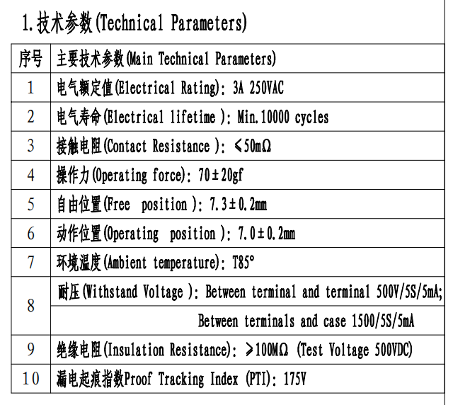 مائیکرو سوئچ پیرامیٹر (تفصیلات)