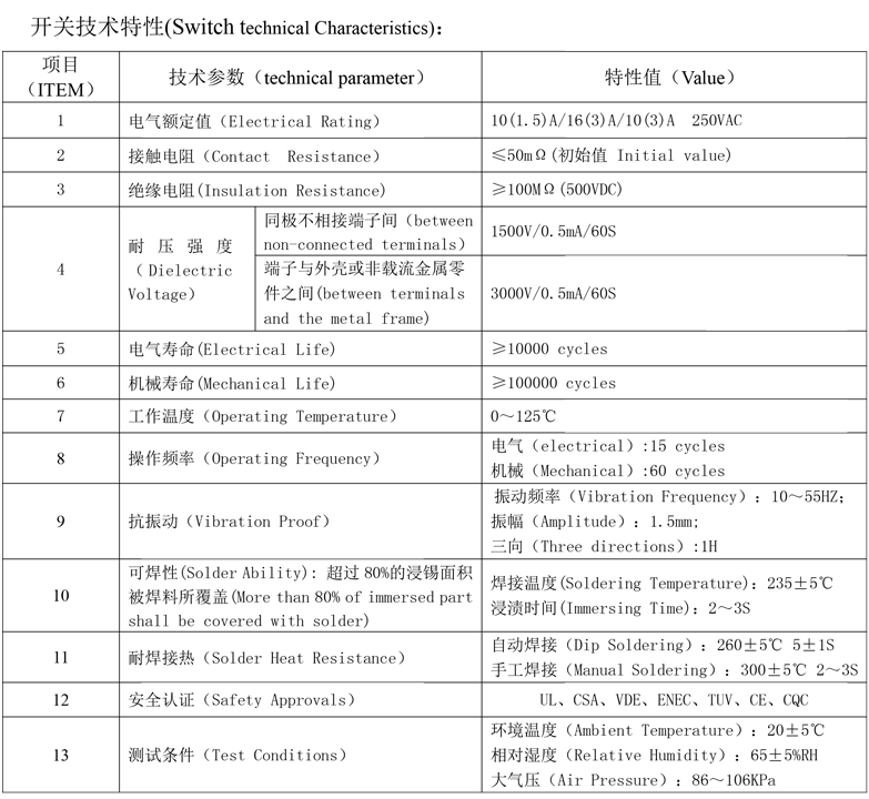 | 1 | بجلی کی درجہ بندی | 10 (1.5) A/16 (3) A/10 (3) A 250VAC | |