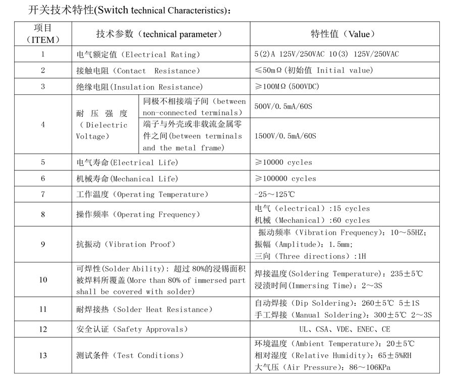 | 11 | ٹانکا لگانا گرمی مزاحمت | ڈپ سولڈرنگ: 260±5℃ 5±1S دستی سولڈرنگ: 300±5℃ 2~3S |