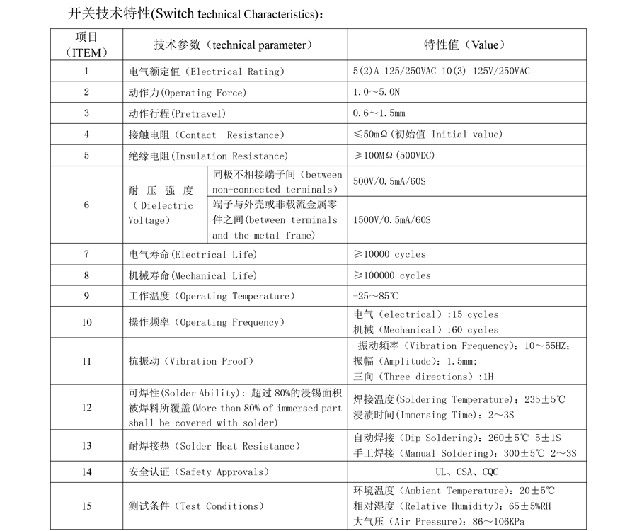 | 13 | سولڈر گرمی کی مزاحمت | ڈپ سولڈرنگ: 260 ± 5 ℃ 5 ± 1s دستی سولڈرنگ: 300 ± 5 ℃ 2 ~ 3S |
